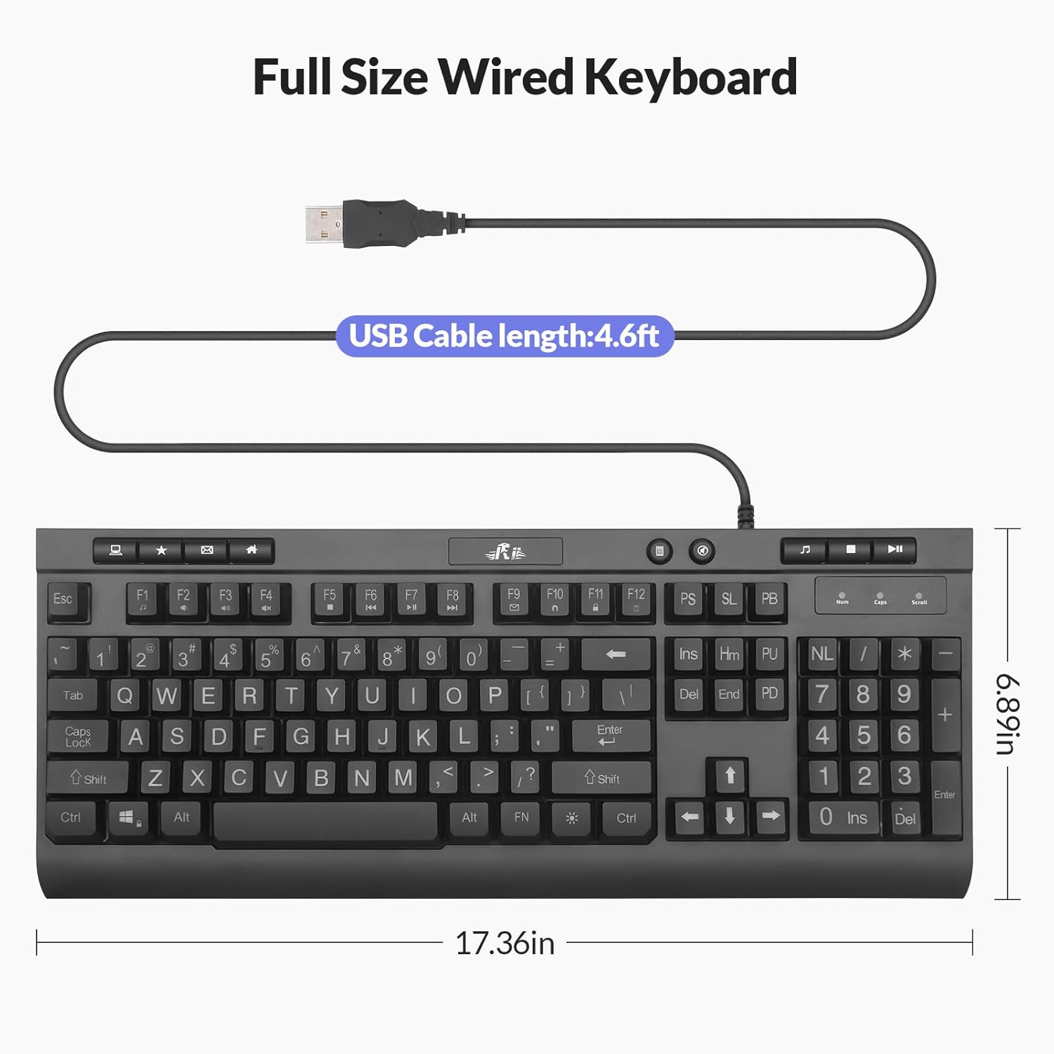 Buy At RiiMallLarge Print Keyboard:4X larger than standard keyboard fonts, clearly visible, helping you type with ease. This keyboard is the perfect choice for seniors, students, office workers, and people with visual impairments