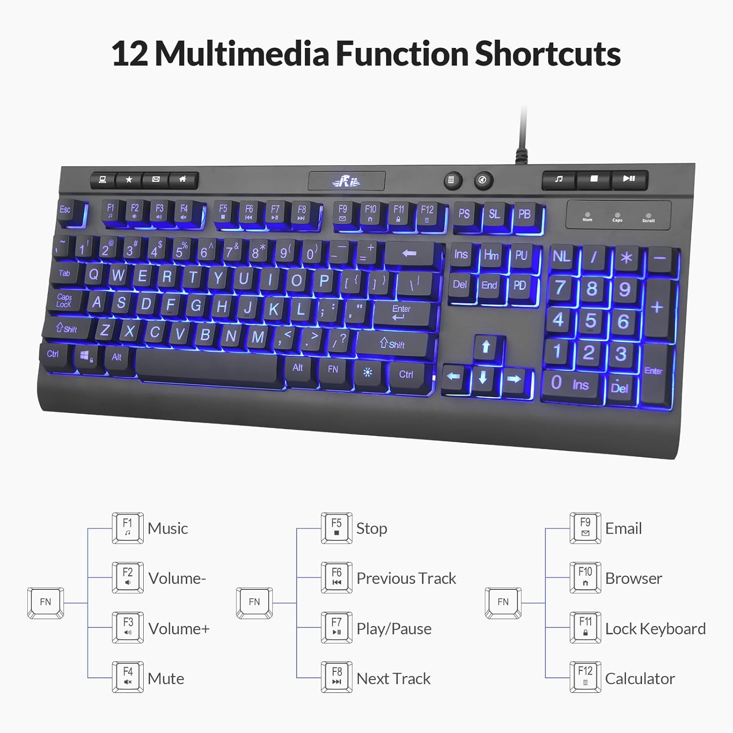 Rii RK900Pro Large Print Backlit Keyboard,Wired USB Full Size Computer Keyboard with Blue Backlight, Compatible with Windows,Mac,Chrome,Linux